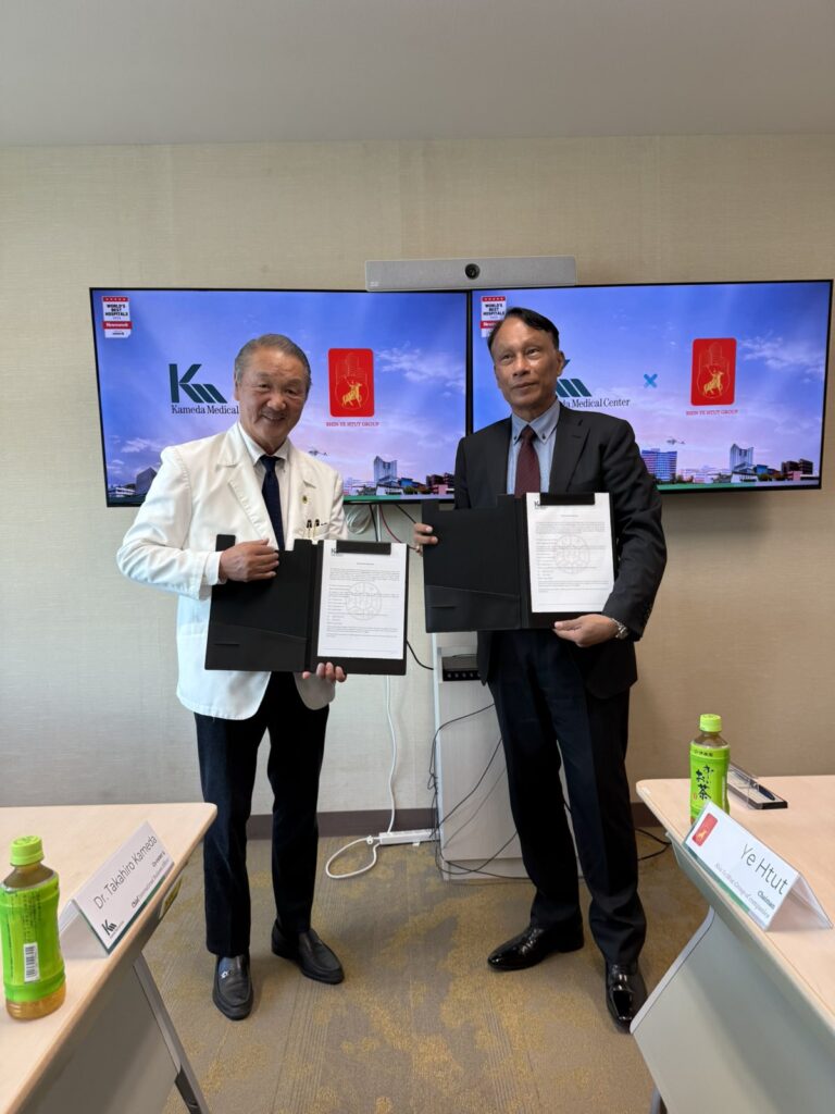 A significant step forward for Myanmar’s healthcare sector was marked today by the official signing of a Medical Center Contract between Japan’s renowned Kameda Medical Center and Myanmar’s Shin Ye Htut Group (SYH Group).